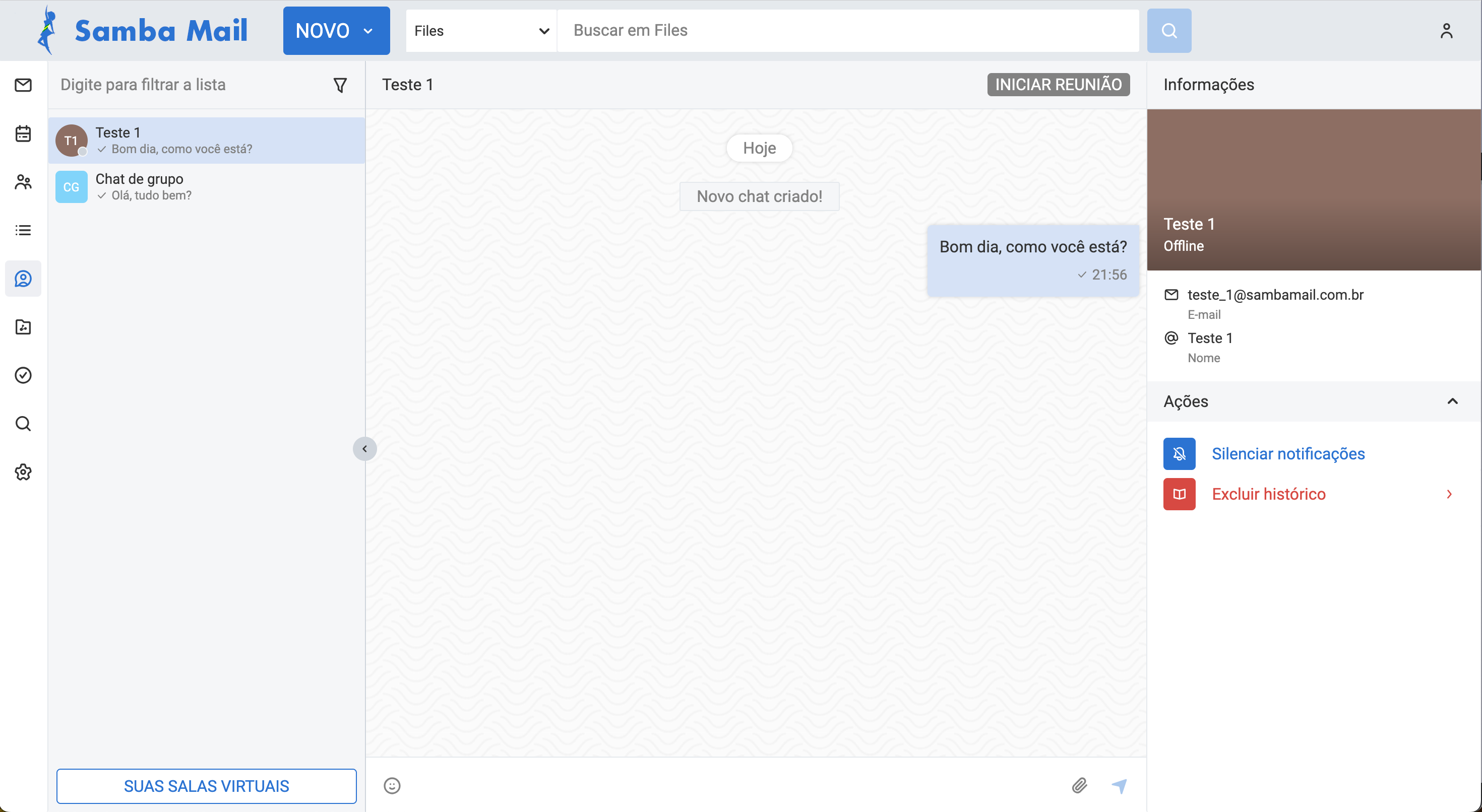 Comunique-se de forma rápida e eficiente com o chat integrado ao seu webmail para comunicação instantânea. Conecte-se, colabore e resolva tudo sem sair da plataforma. Uma experiência fluida e produtiva, tudo em um só lugar.